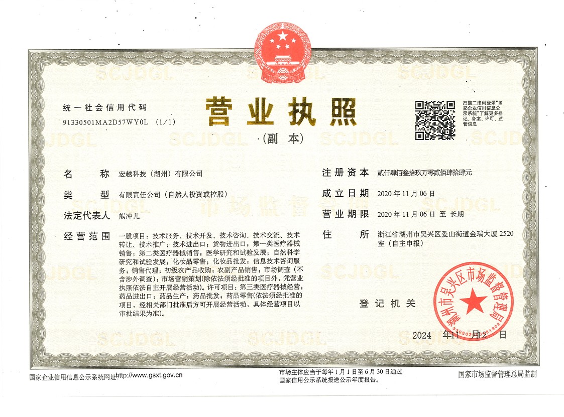 宏越科技(湖州)有限公司,成立于2020年11月。公司主要從事藥物研究及藥品國內注冊上市與產業化的新型藥品MAH持有人企業。公司擁有先進的藥品研發理念,結合科學嚴謹的質量研究和管理,實現藥品項目的注冊申報以及MAH持有,最終實現產業化。